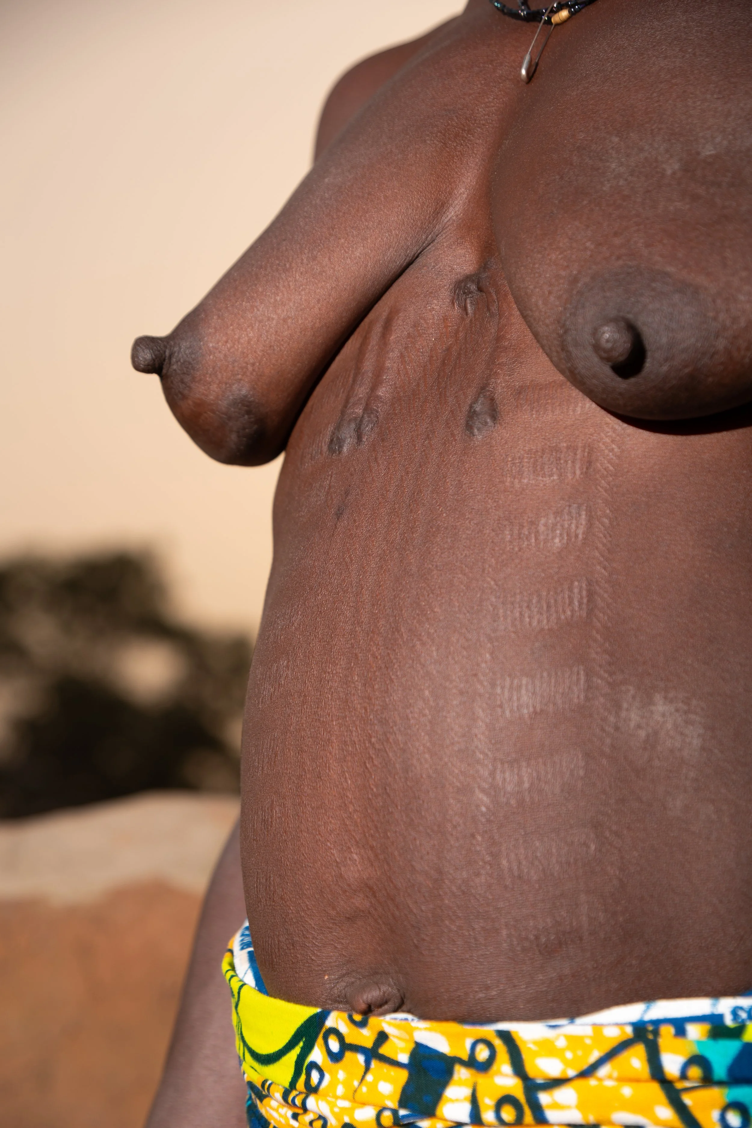 The scars upon her chest were cut when she was still a girl.