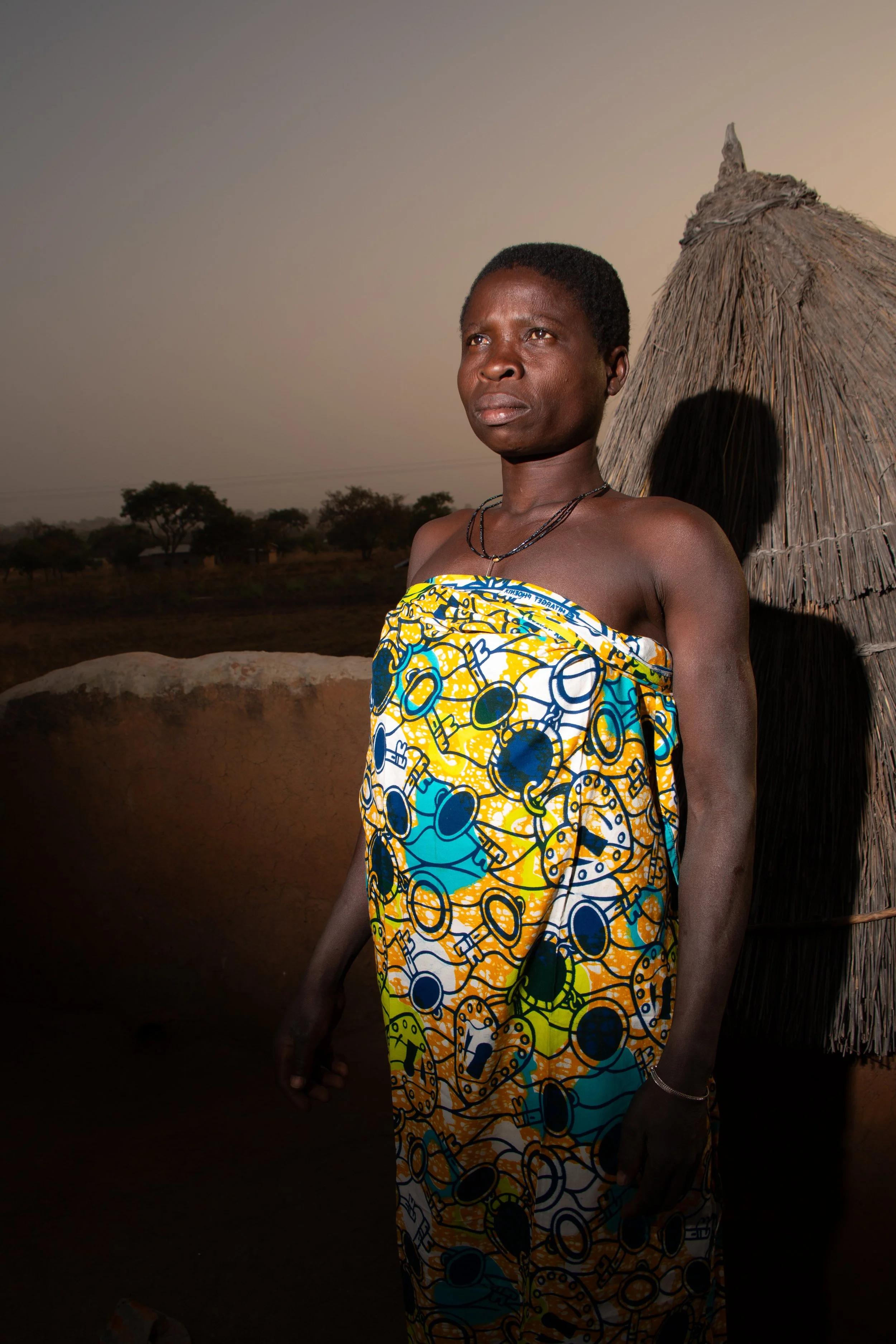Now she stands before her house,